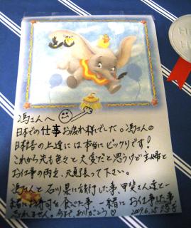この弱4年間、皆さんと一緒に仕事して来て、本当によかったと思います。外国人そして職場で数少ない女性としての私、最初に来たときは日本語もよく喋れなかったし、仕事もうまくできなかった。その時は、皆さん親切にいろいろ指導していただいて、本当に助かりました。今までやってきて、大変苦労しましたけど、いろんな収穫もできました。本当に皆さんに感謝の気持ちがいっぱいです。
